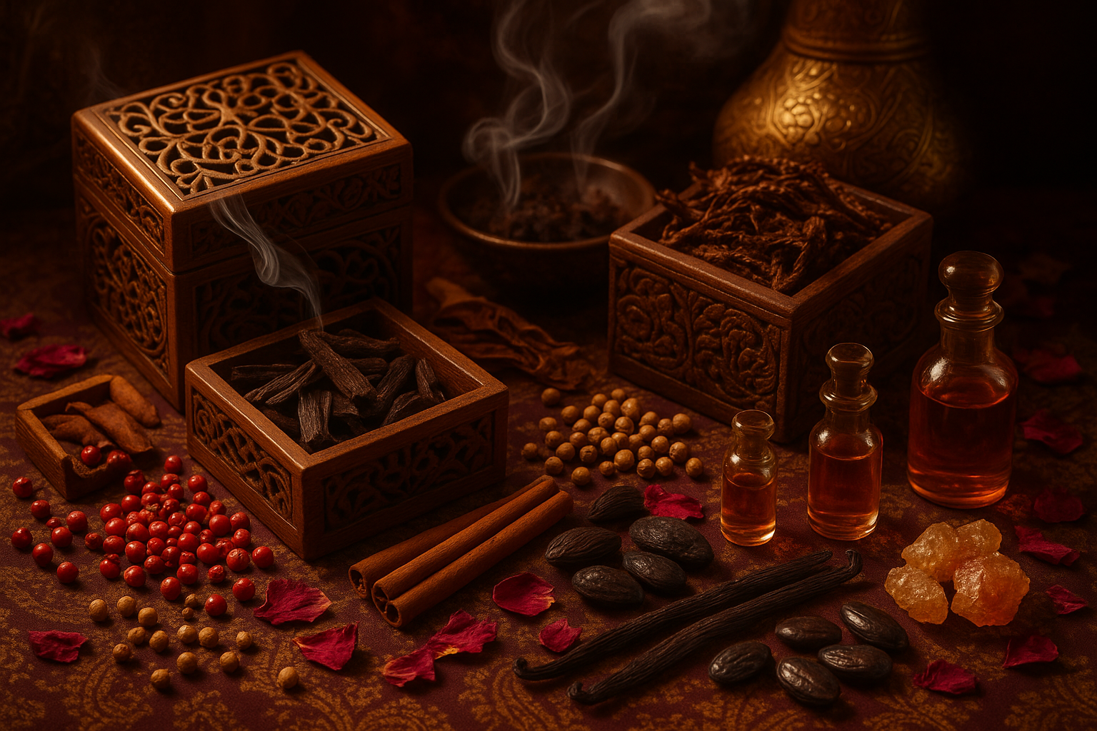 Base notes: Oriental, Sandalwood, Oud, Amber, Labdanum, Tobacco, Tonka Bean, Musk, Patchouli, Incense, Benzoin, Vanilla, Cedar