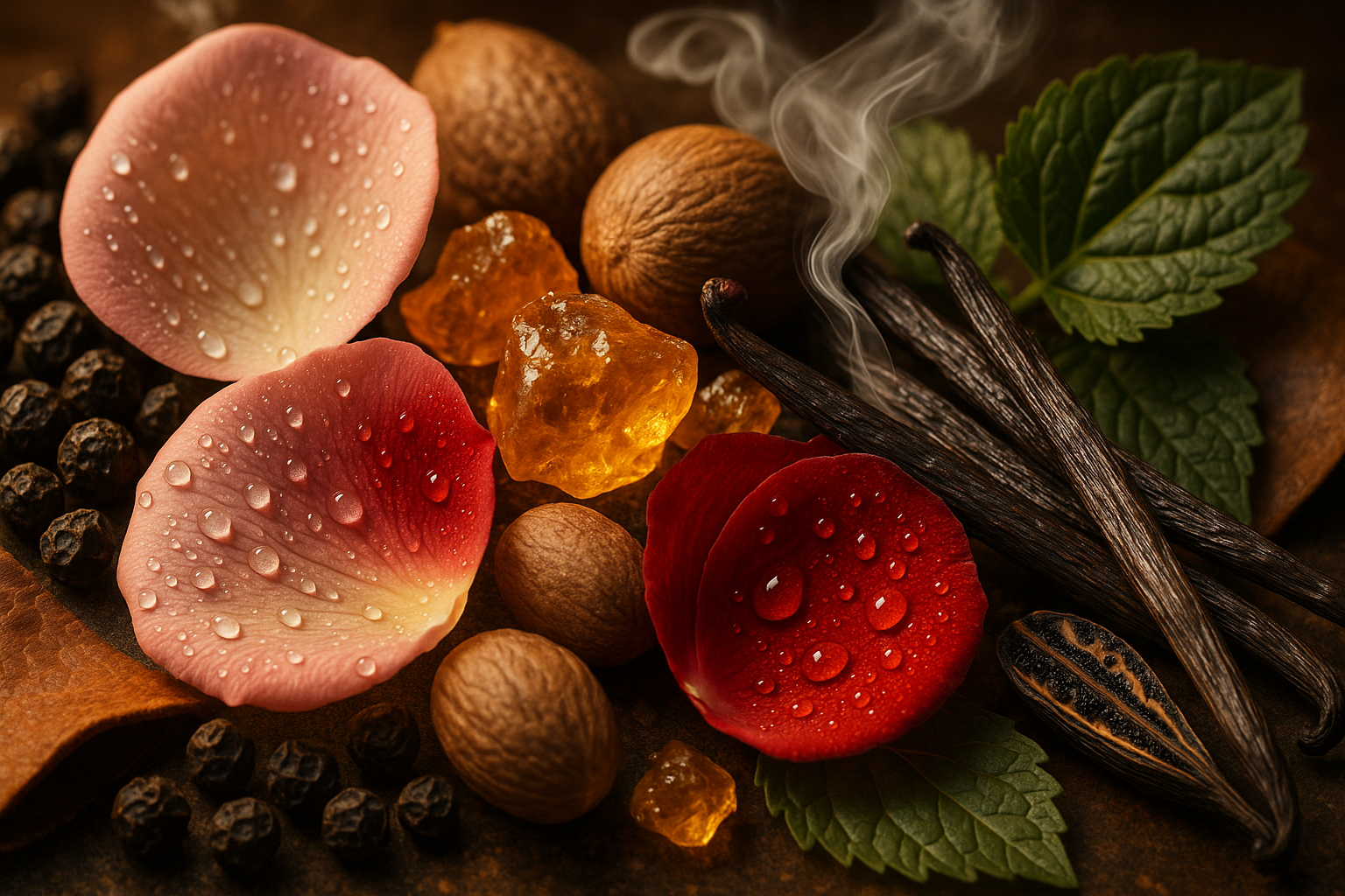 Notes in perfumery are descriptors of scents that can be sensed upon the application of a fragrance. Notes are separated into three classes; top/head notes, middle/heart notes, and base notes; which denote groups of scents which can be sensed with respect to the time after the application of a fragrance. These notes are created carefully with knowledge of the evaporation process and intended use of the fragrance.